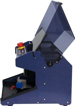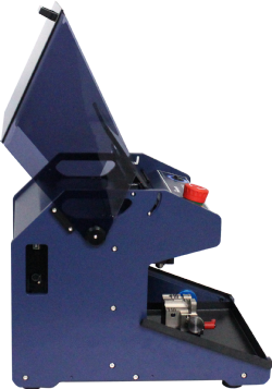 and the right side accommodates dimple and track keys. A top-press mechanism allows quick material changes without extra tools. Except for certain specialty shapes, one clamp suffices